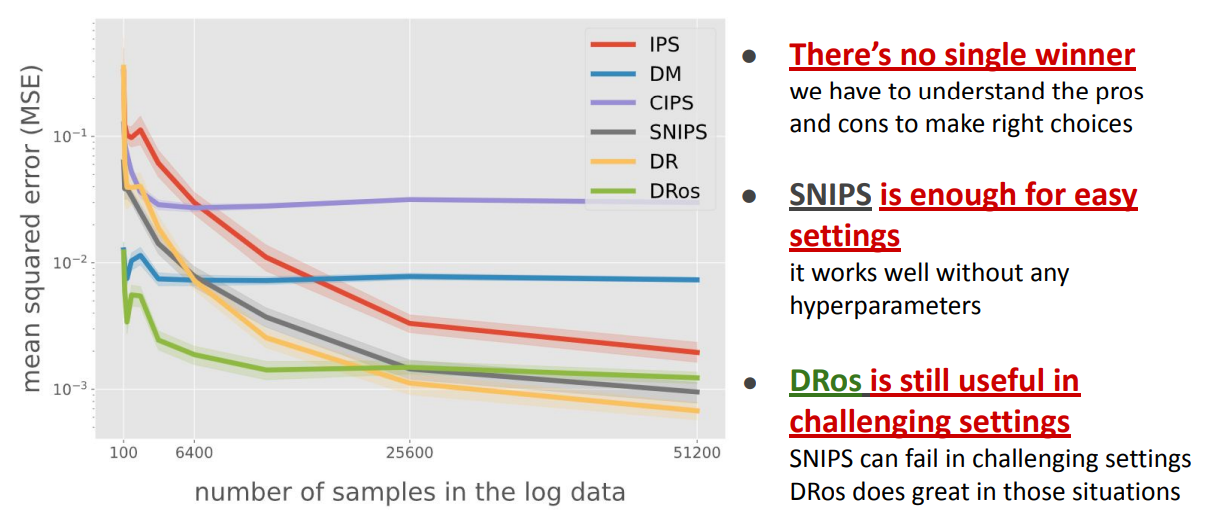 In OPE experiments, you as a researcher try to propose a OPE estimator that can lead to an accurate MSE (lower MSE) than existing estimators.