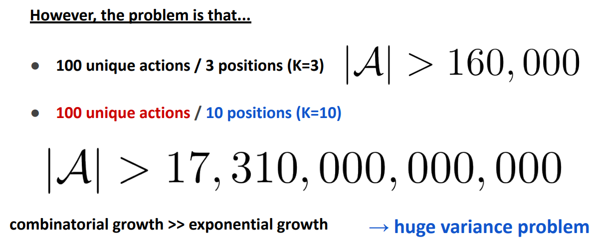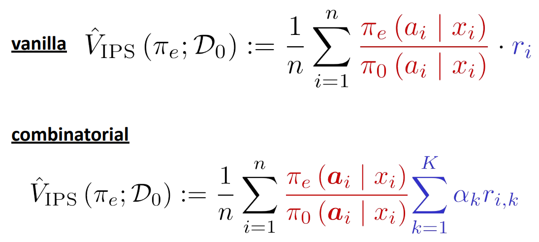 Even in the combinatorial action setting, we can (naively) use the IPS estimator to get unbiased/consistent estimate: