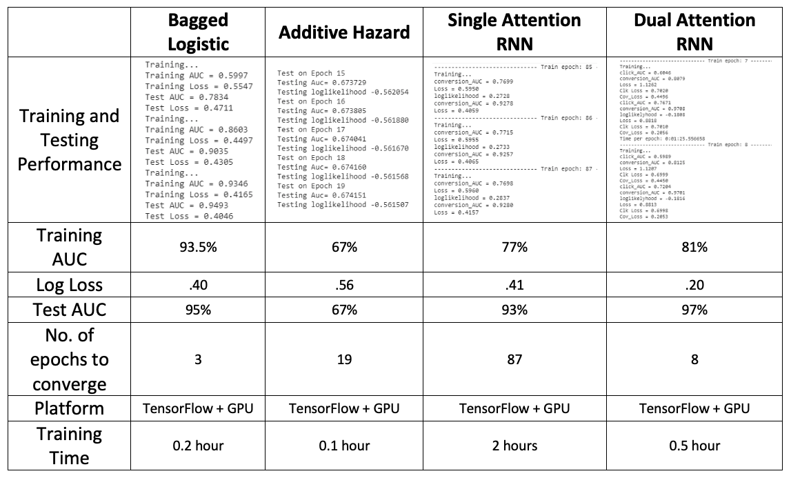 - Models: Markov chain models, Survival analysis models, Attention based Recurrent neural net (RNN) models