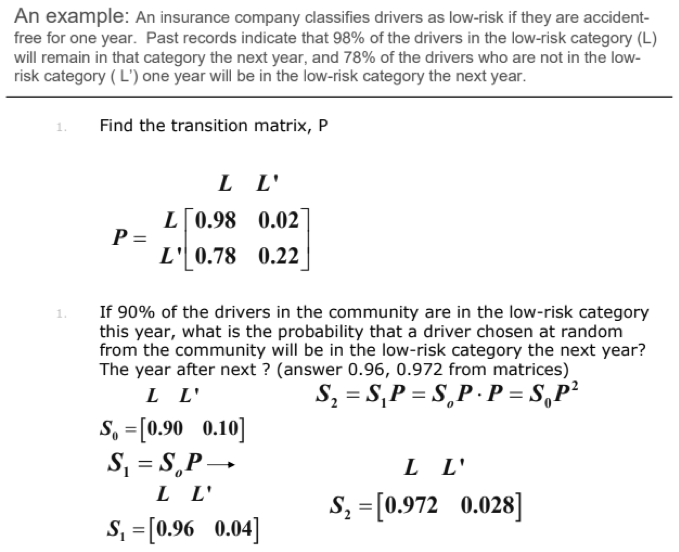 - So, if we multiply the Initial state matrix by the transition matrix, we obtain the first state matrix. If the first state matrix is multiplied by the transition matrix we obtain the second state matrix